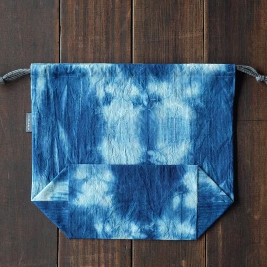 藍染の巾着袋(1点もの) ※中袋として小箱トートにセット可